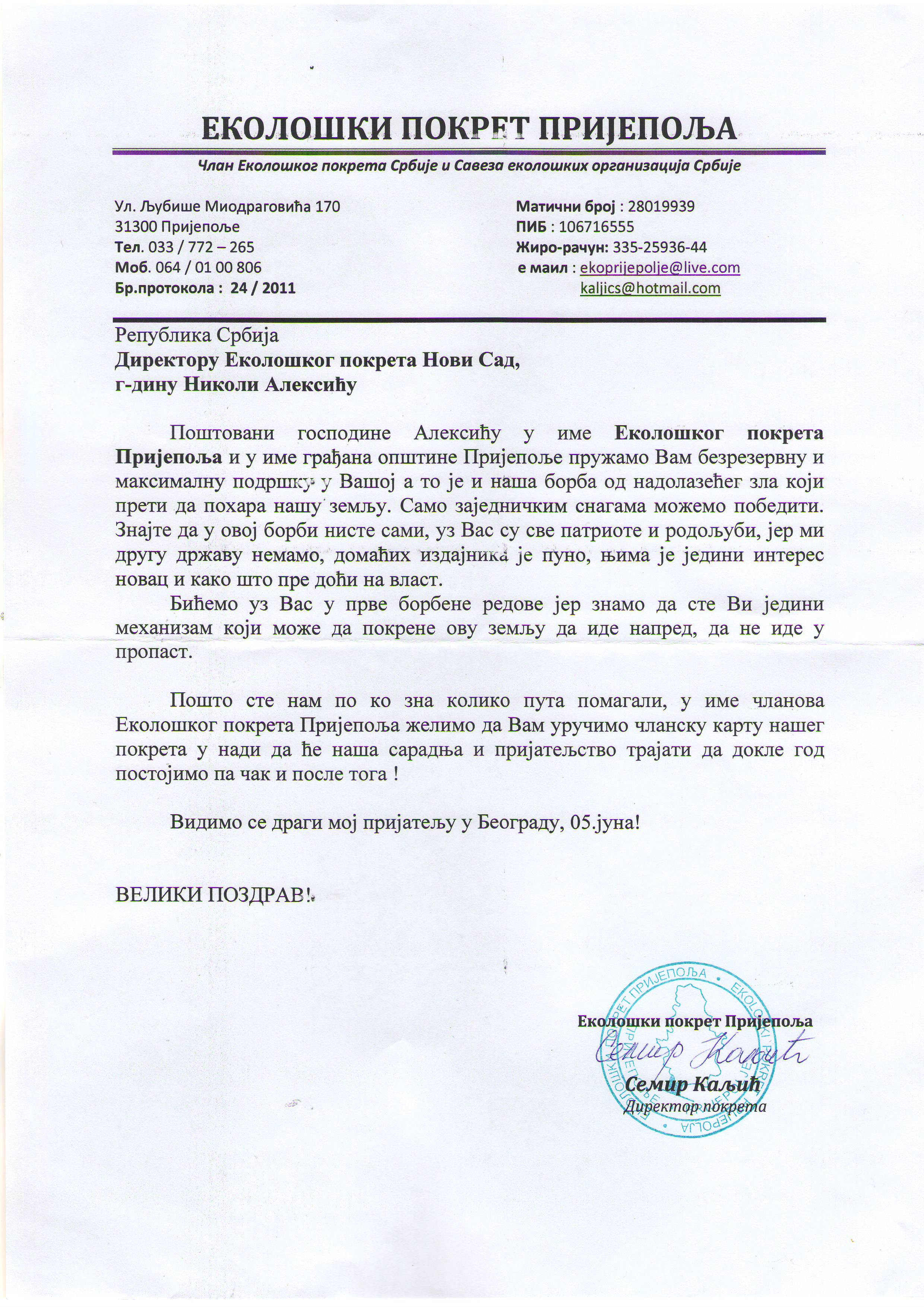 Žao mi je što ne mogu finansijski da pomogmem, ali mislim da bi sajt www.ekopokret.org.rs mogao da bude još bogatiji izvor informacija i centar za koordinisanje aktivnostima. Ako bude prilika voleo bih nekako da učestvujem.